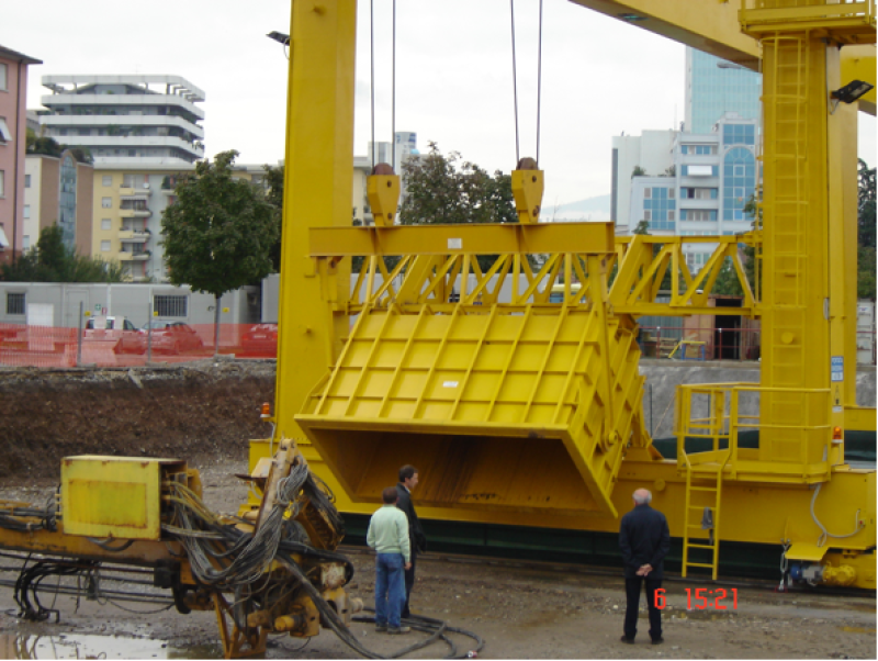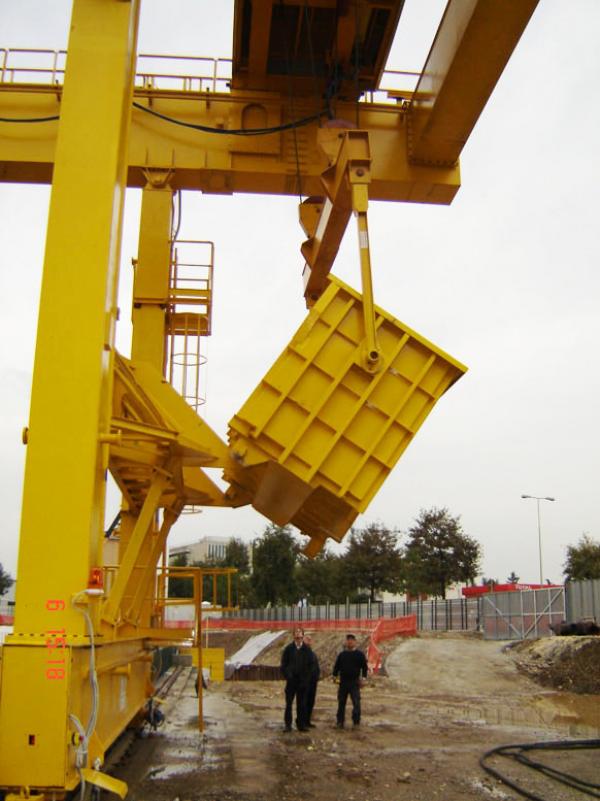Dispositivo di ribaltamento: con traversa fissata al ponte e uncini di aggancio