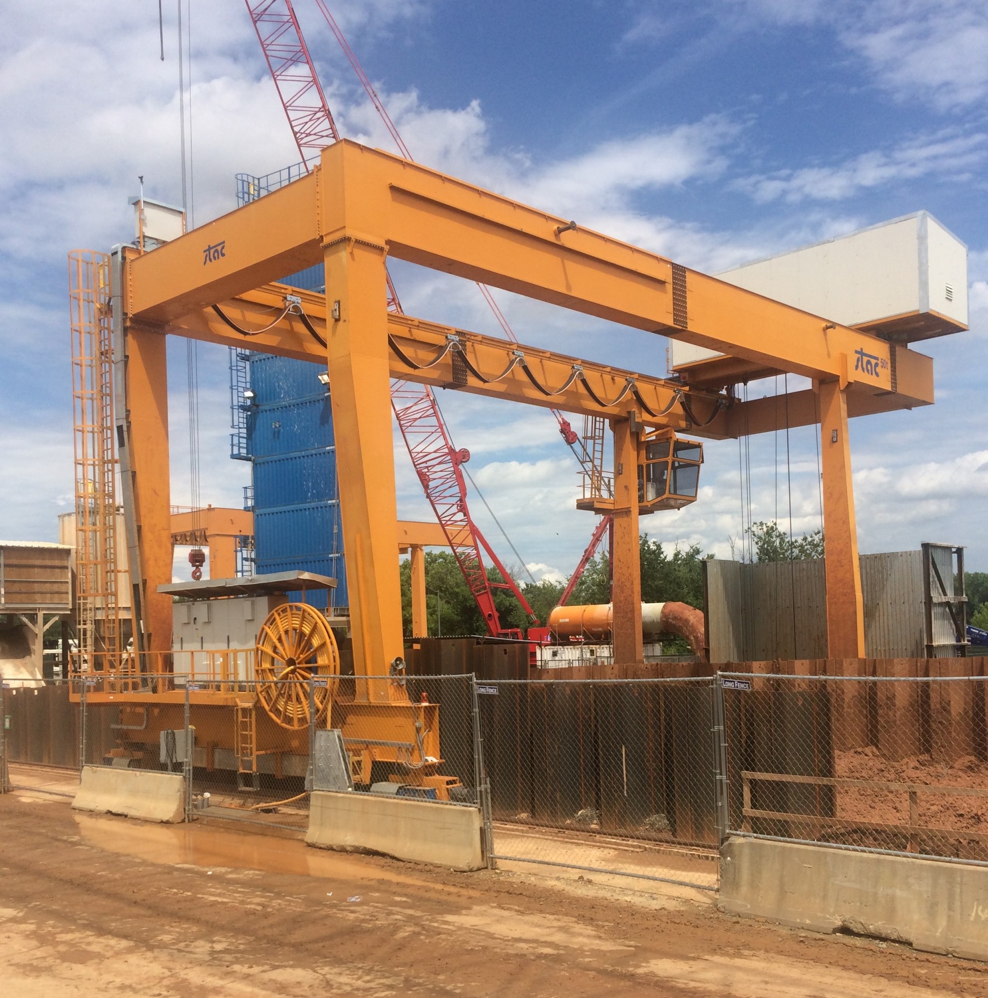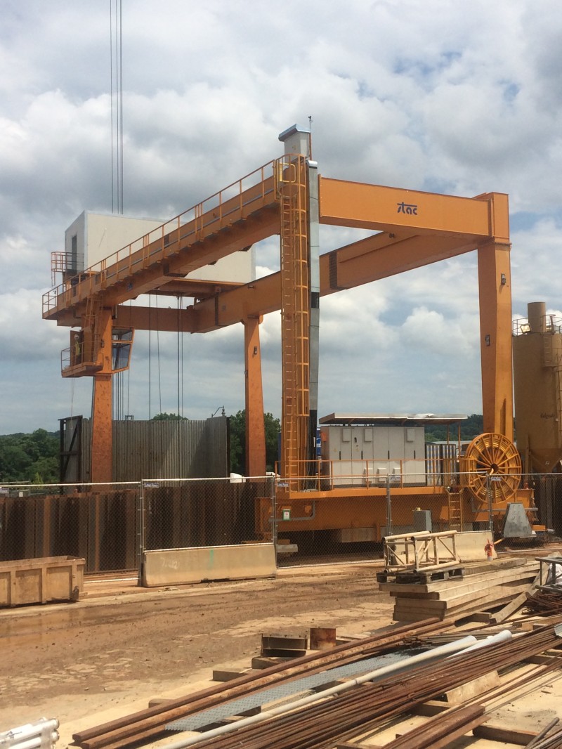 Portata: 50 ton Corsa al gancio: 45 m Scartamento: 17,80 m Velocità di sollevamento: 30 m/min Sbalzo: 4 m utile