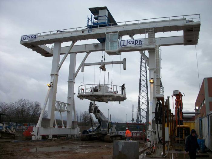 Gru a cavalletto completa di piattaforma mobile basculante