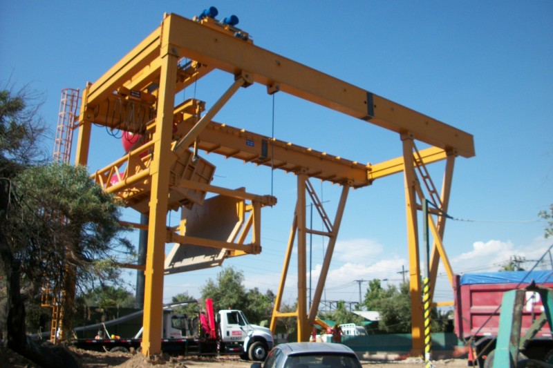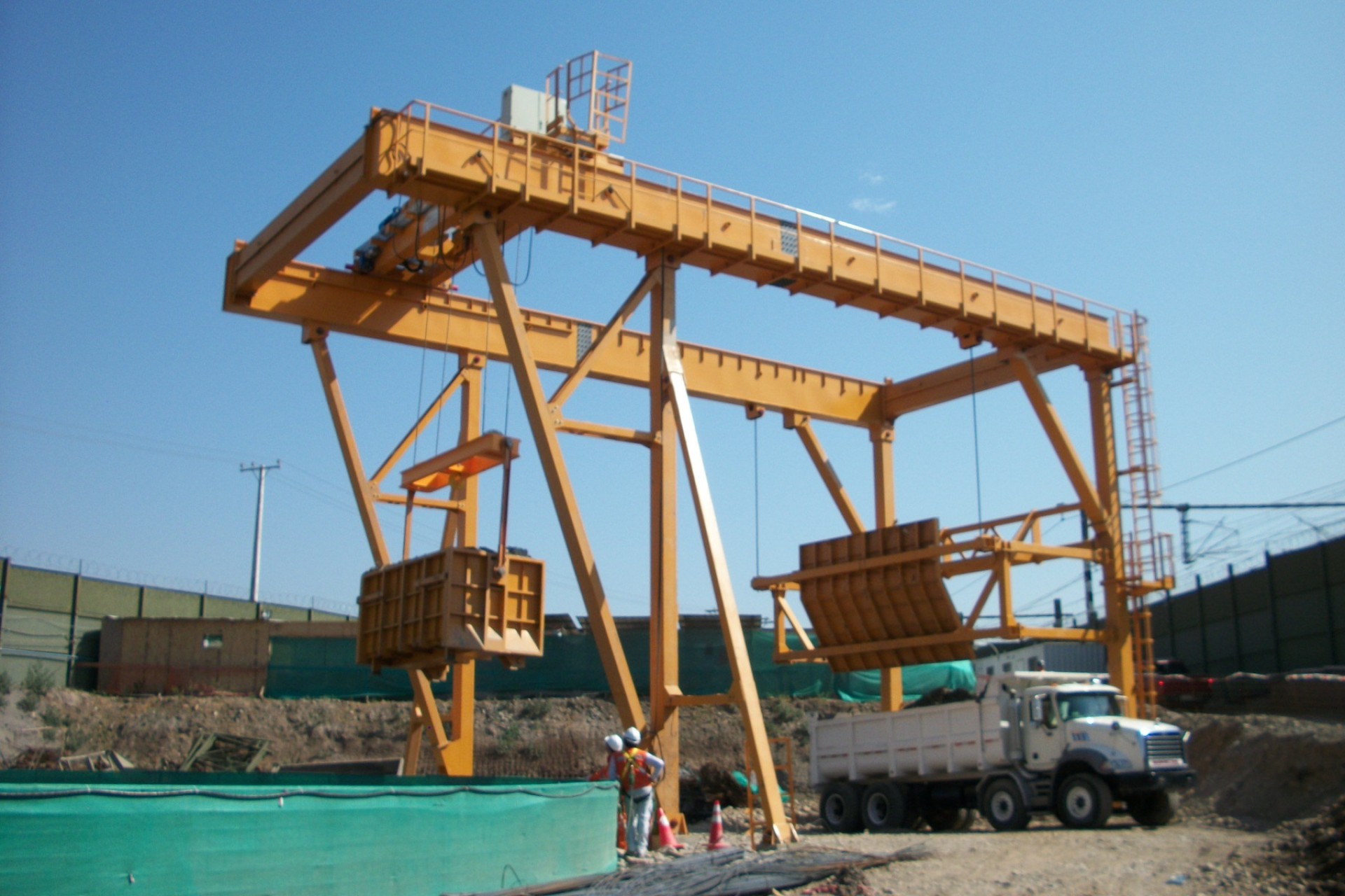 Portata: 25 ton Corsa al gancio: 45 m Scartamento: 12,50 m Velocità di sollevamento: 20 m/min Sbalzo: 3,5 m utile